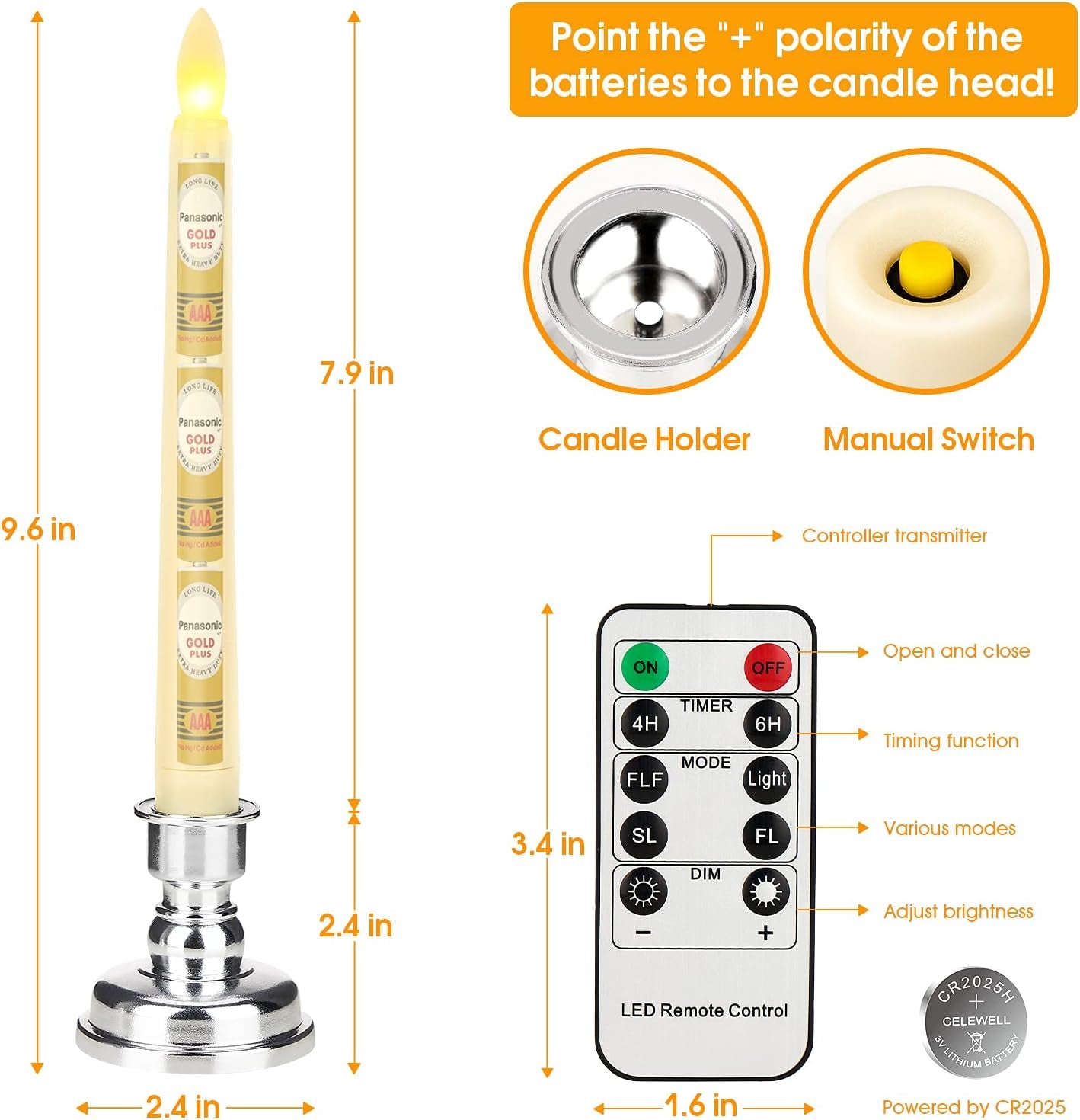 SAFE & BATTERY OPERATED: Each flameless flickering taper candle requires 3 AAA batteries(Not Included).That will provide up to 260 hours... Read more