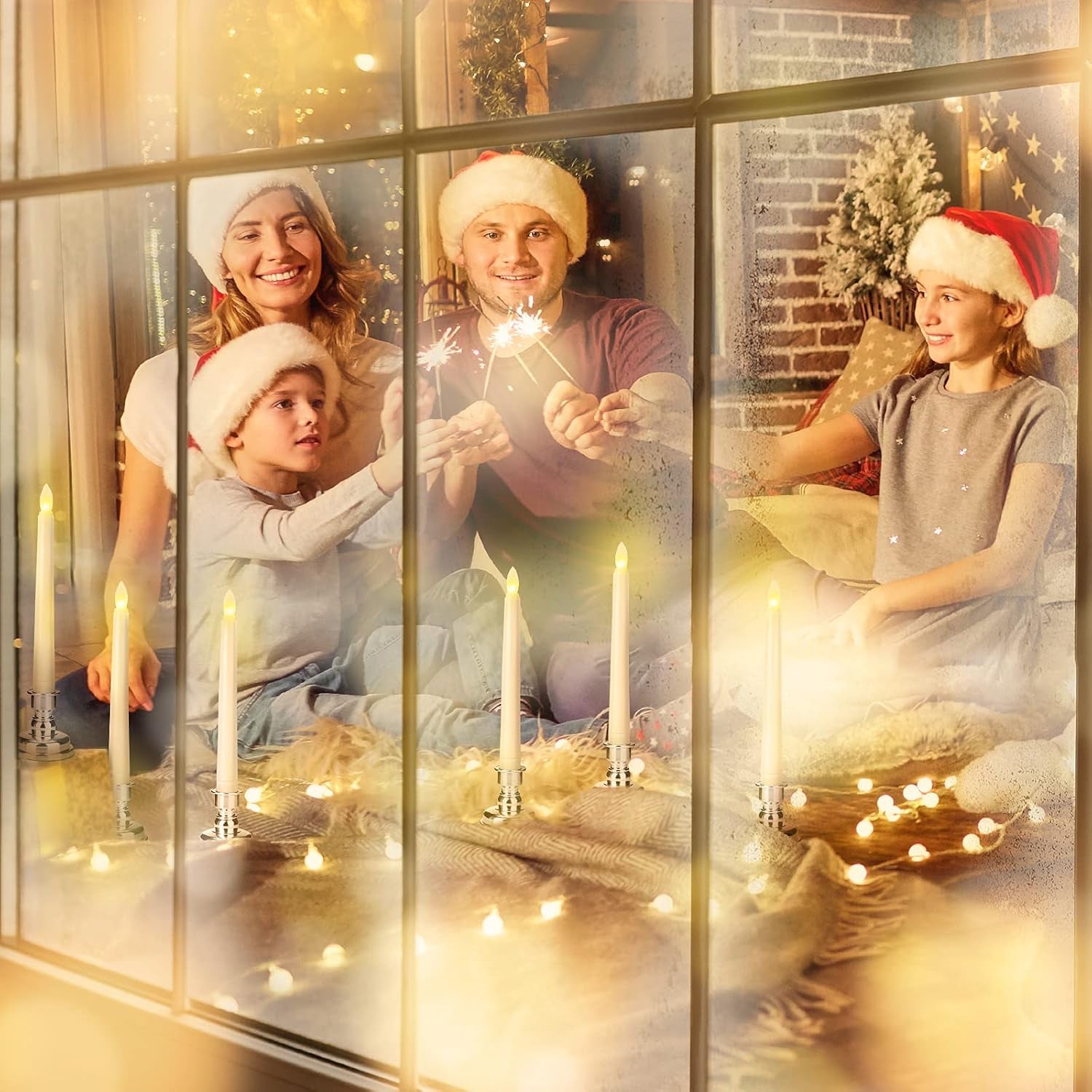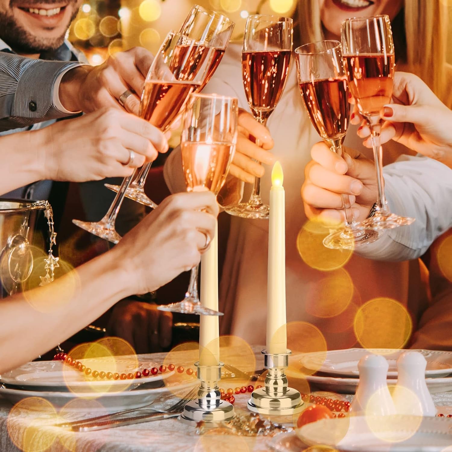 LED Flameless Taper Candles with Remote & Timer Battery Operated Flickering Warm Light Christmas Window Candle for Wedding Party Holiday Table Decoration (9 Packs,Ivory+Sliver Holder(A))…